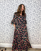 Details: 100% Cotton. Handmade & hand block printed. Fully lined with pockets. Back center smocking for comfort. Side zipper for an enhanced fit. Bow sash included.