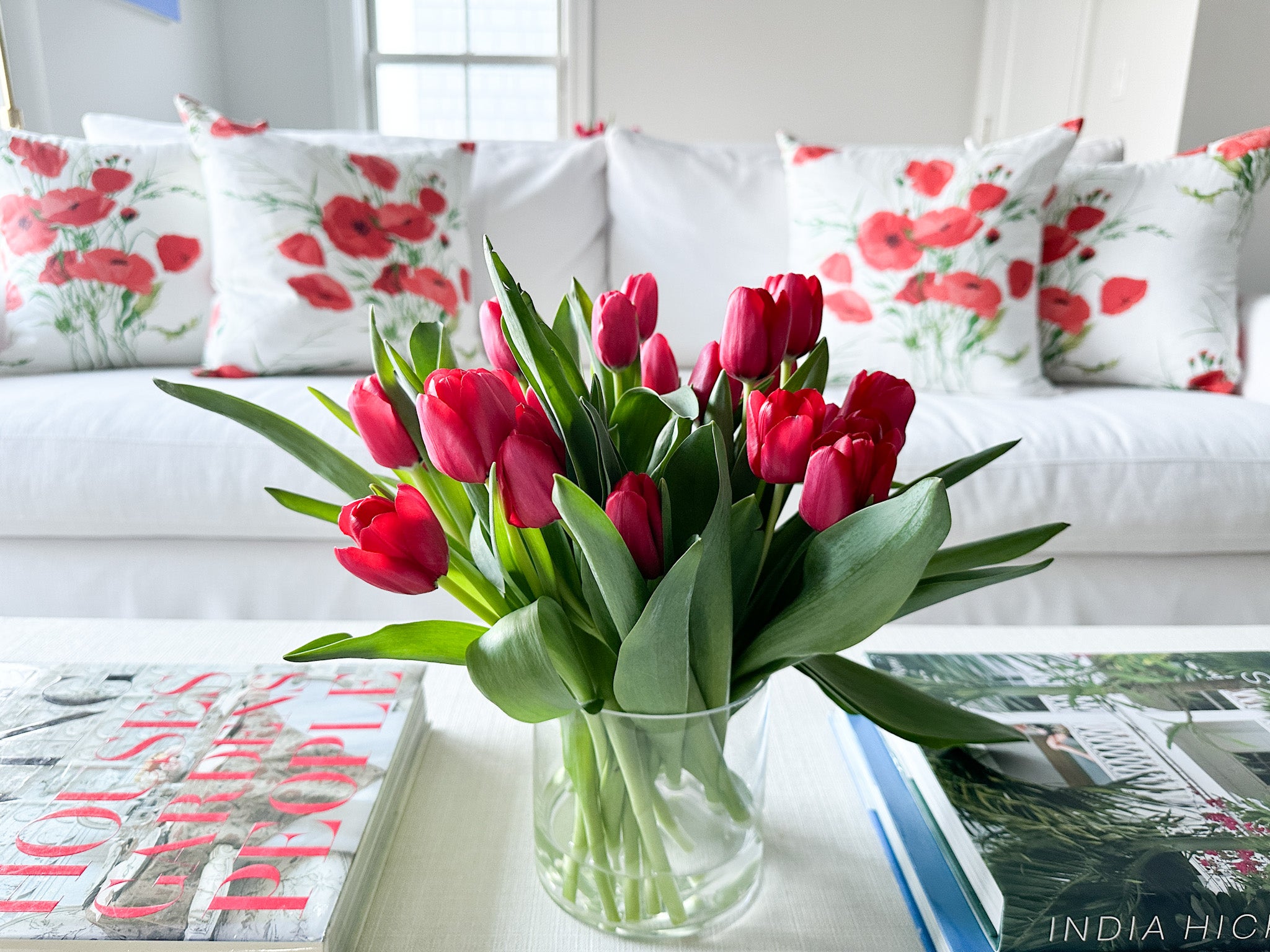 Bright poppies take center stage of this joyful Schumacher floral. This vibrant hue makes for a sunny space.