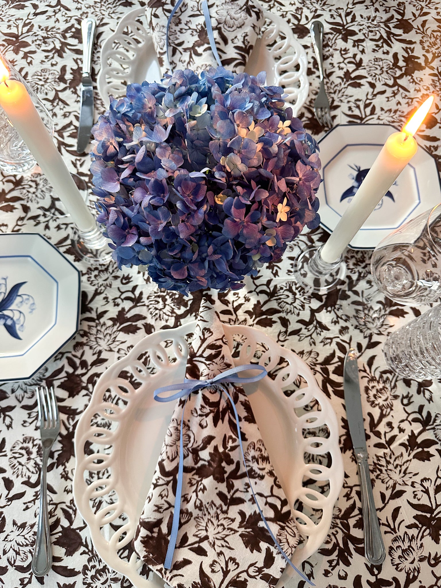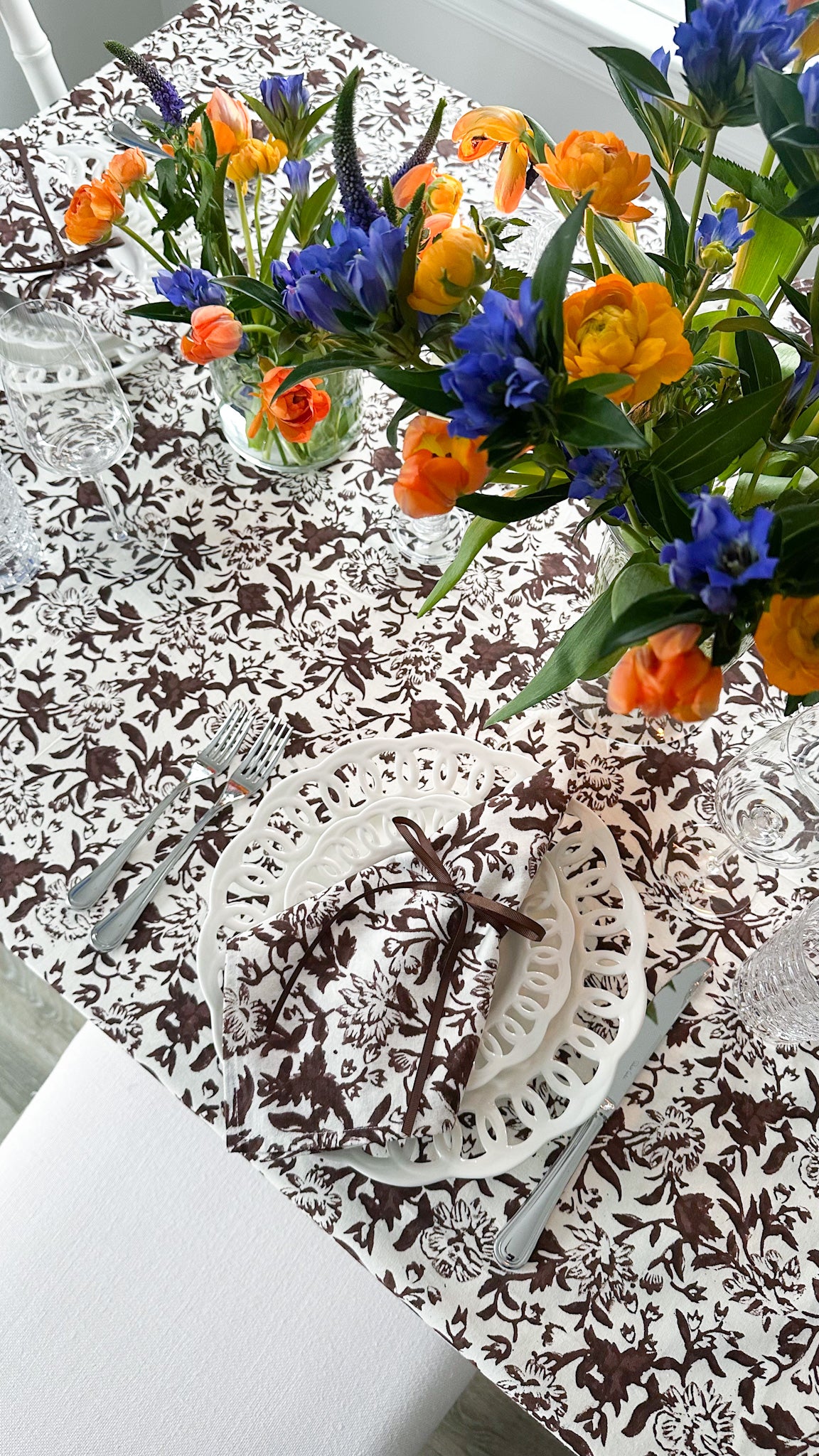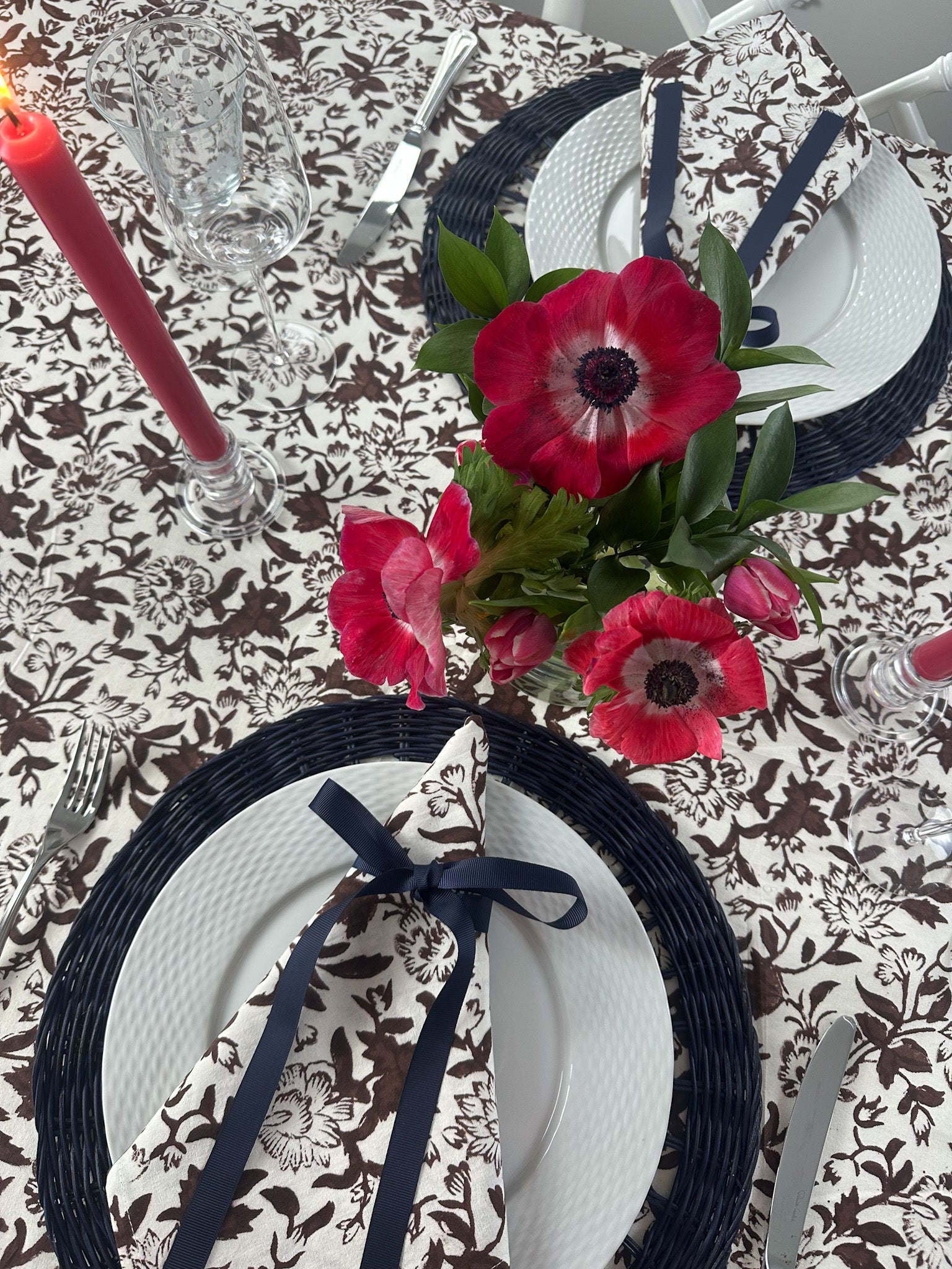 Timeless and elegant, our custom Wildflower block print napkins from our debut linens' line are as versatile as they are pretty. Pair with lighter, brighter florals come spring or deeper tones for a moodier, chic look.