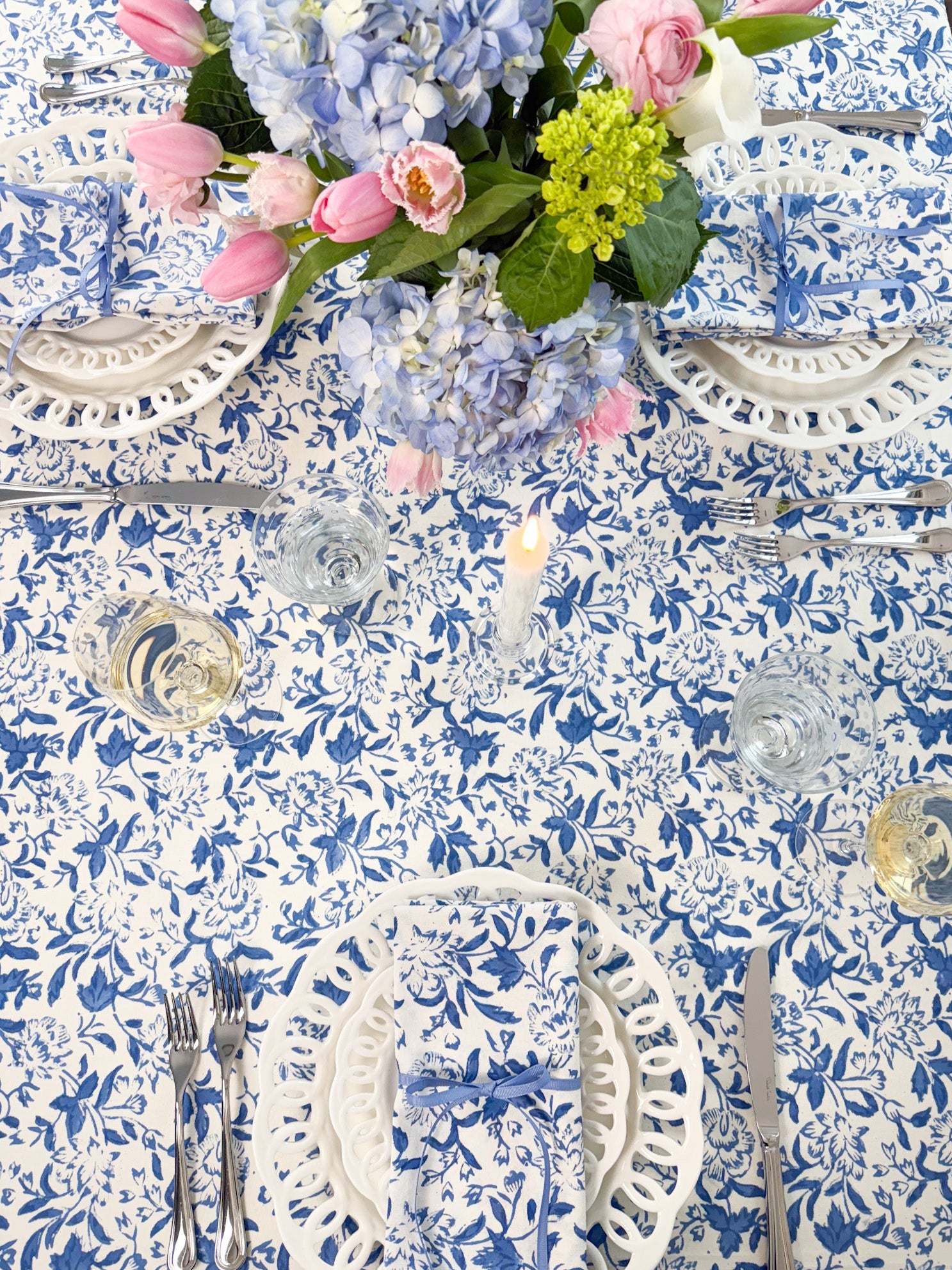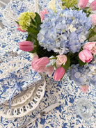 Our elegant, custom hand-blocked Wildflower print in the perfect shade of coastal blue has arrived for your prettiest spring & summer table yet. Our timeless and classic print elevates special occasion tables and casual al fresco dining alike. Pair with our Coastal Blue Wildflower Tablecloth.
