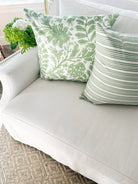 From Kravet’s Greenwich collection. A whimsical green & white motif that will freshen any traditional scheme. Pairs well with complementary greens, blues & more.