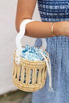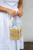 Introducing our limited-edition collab with Breck & Grier: meet the Emily — the perfect bucket bag! Handmade by artisans in Morocco, the Emily features a woven reed design, vegan leather wave detailing, and our custom Coastal Blue Wildflower print insert inspired by timeless New England summers. Finished with a structured leather bottom and a removable crossbody strap. It's très chic!