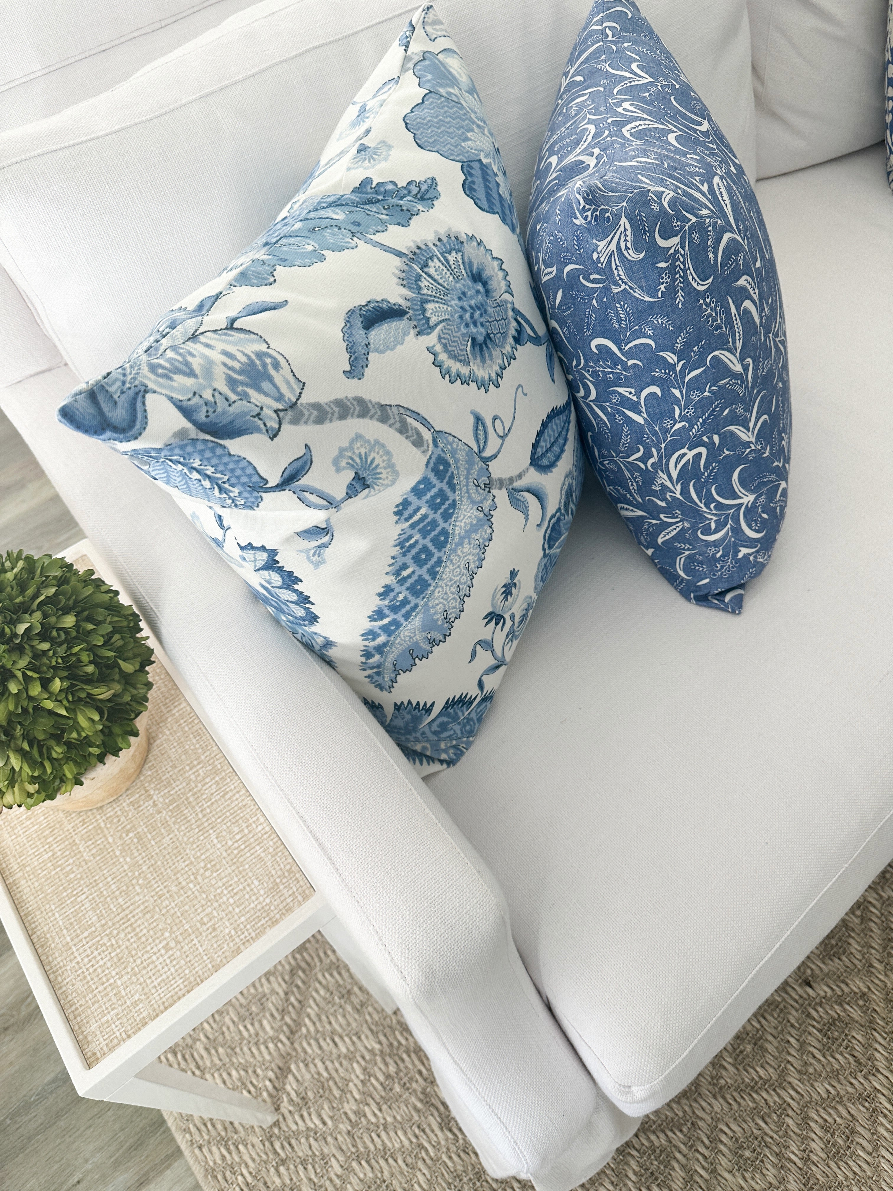 New this season from Serena & Lily, this playful yet durable (hello, performance fabric!) botanical is the perfect addition. Available in french blue & grass colorways.
