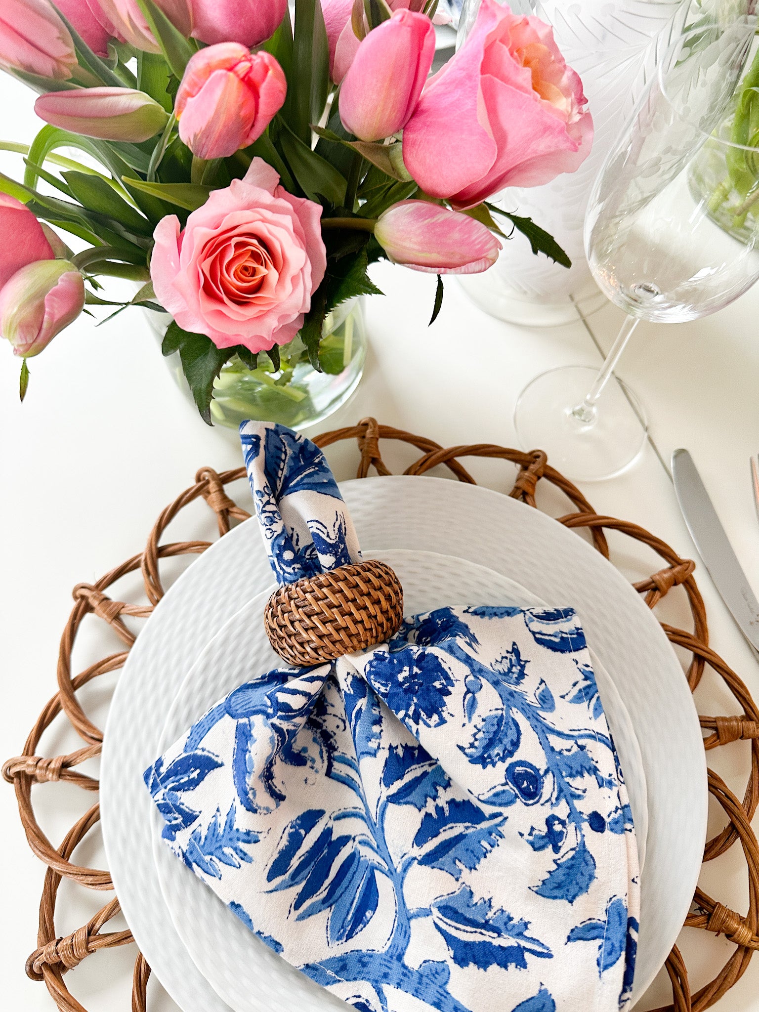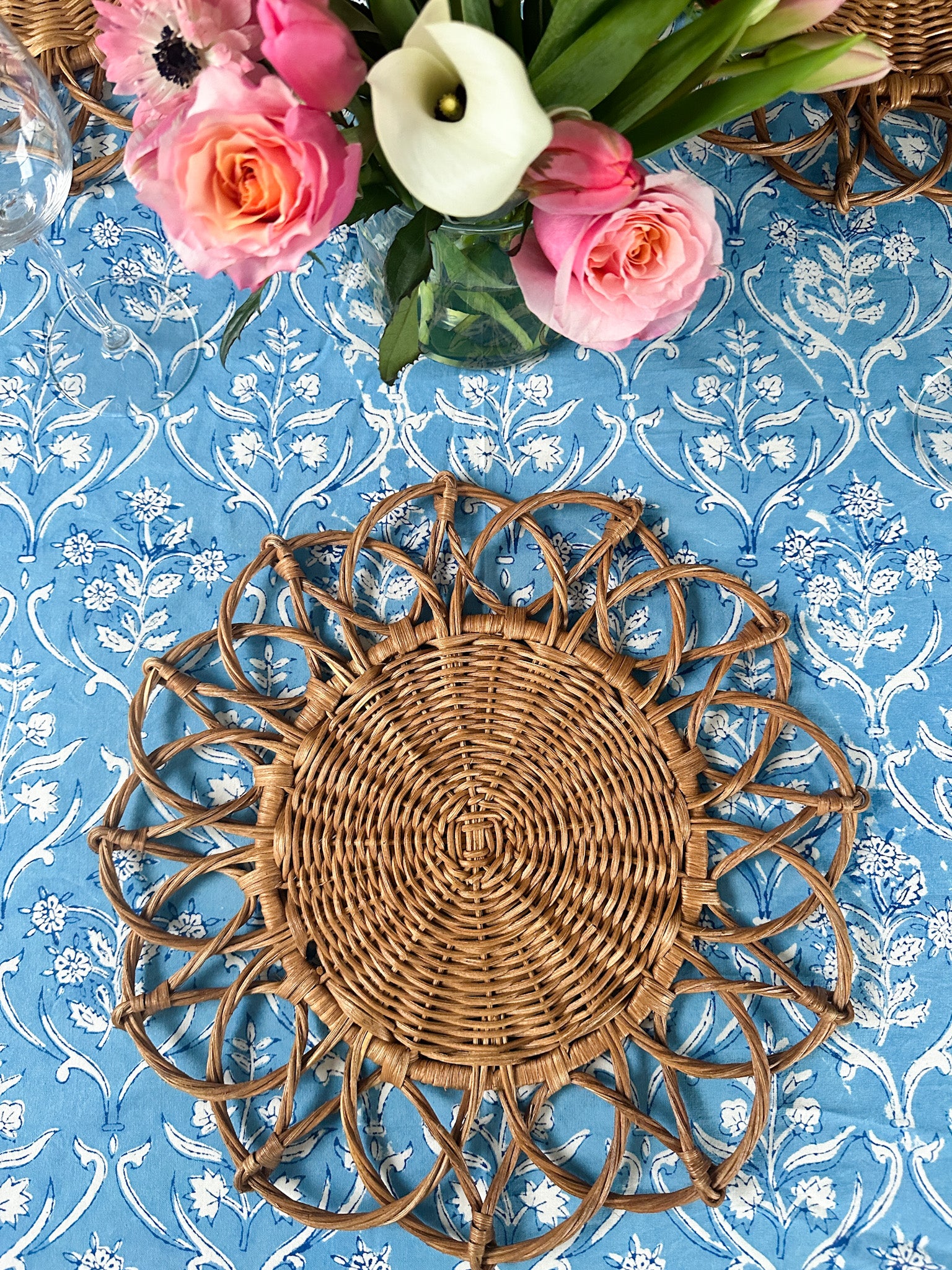 Rich caramel tones & textured rattan bring warmth and coastal style to any table. These are so versatile and pair well with a simple white napkin or a variety of bold & colorful prints.