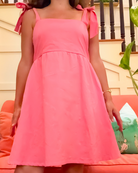 Vibrant peony poplin is oh-so-flattering for summer days & nights. Easily dress up or down, our new Blair dress is a tailored mini with timeless bow accents and classic appeal.