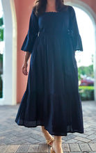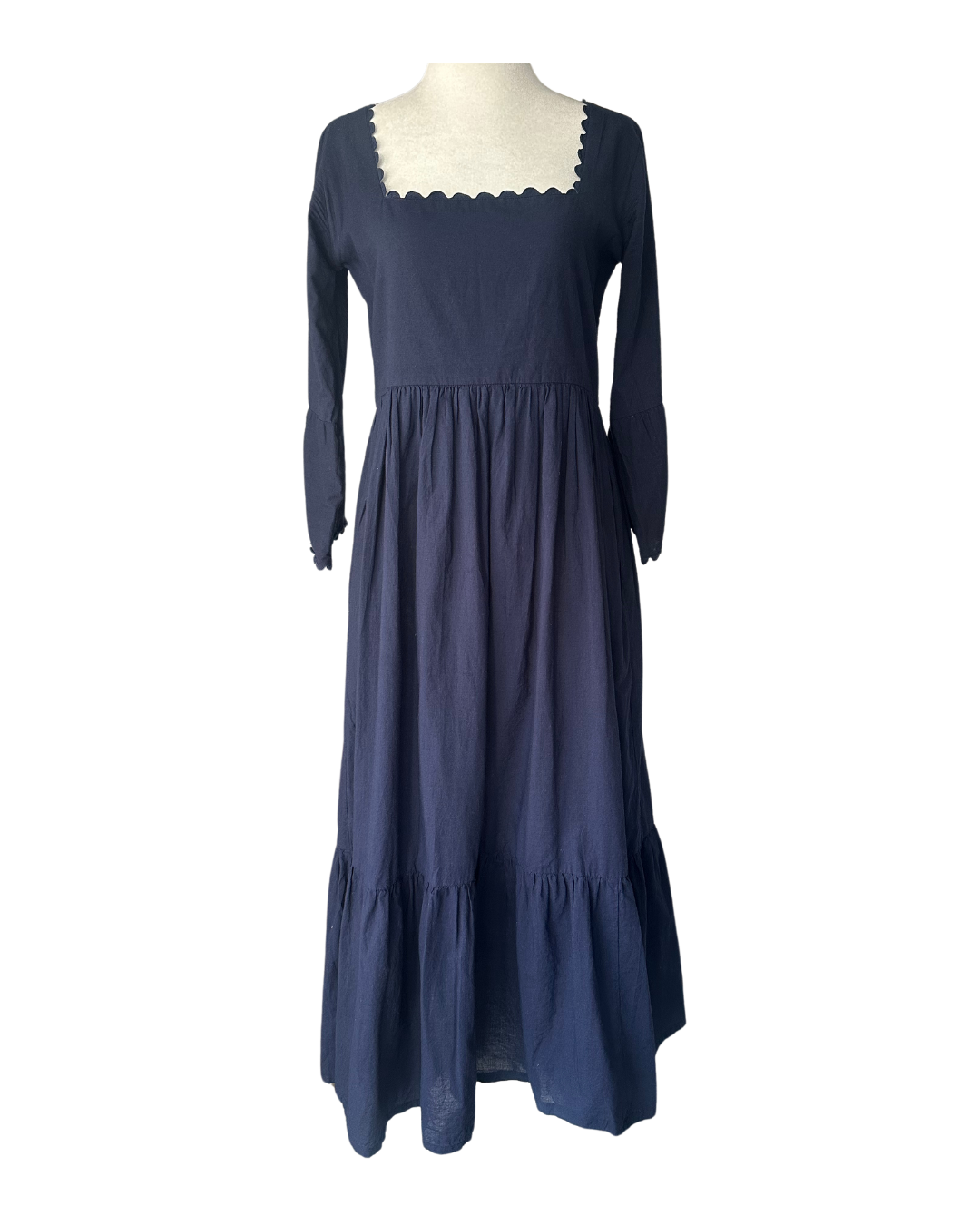 Timeless & effortless, our Waveny dress in navy with scallop ric rac trim and bell sleeve detail is an everyday go-to. It's comfortable yet elegant, and well tailored to dress it up a notch. Breathable and perfect for those days where you'd like a little coverage, but don't need a full extra layer. We'll be wearing this on repeat all summer long.