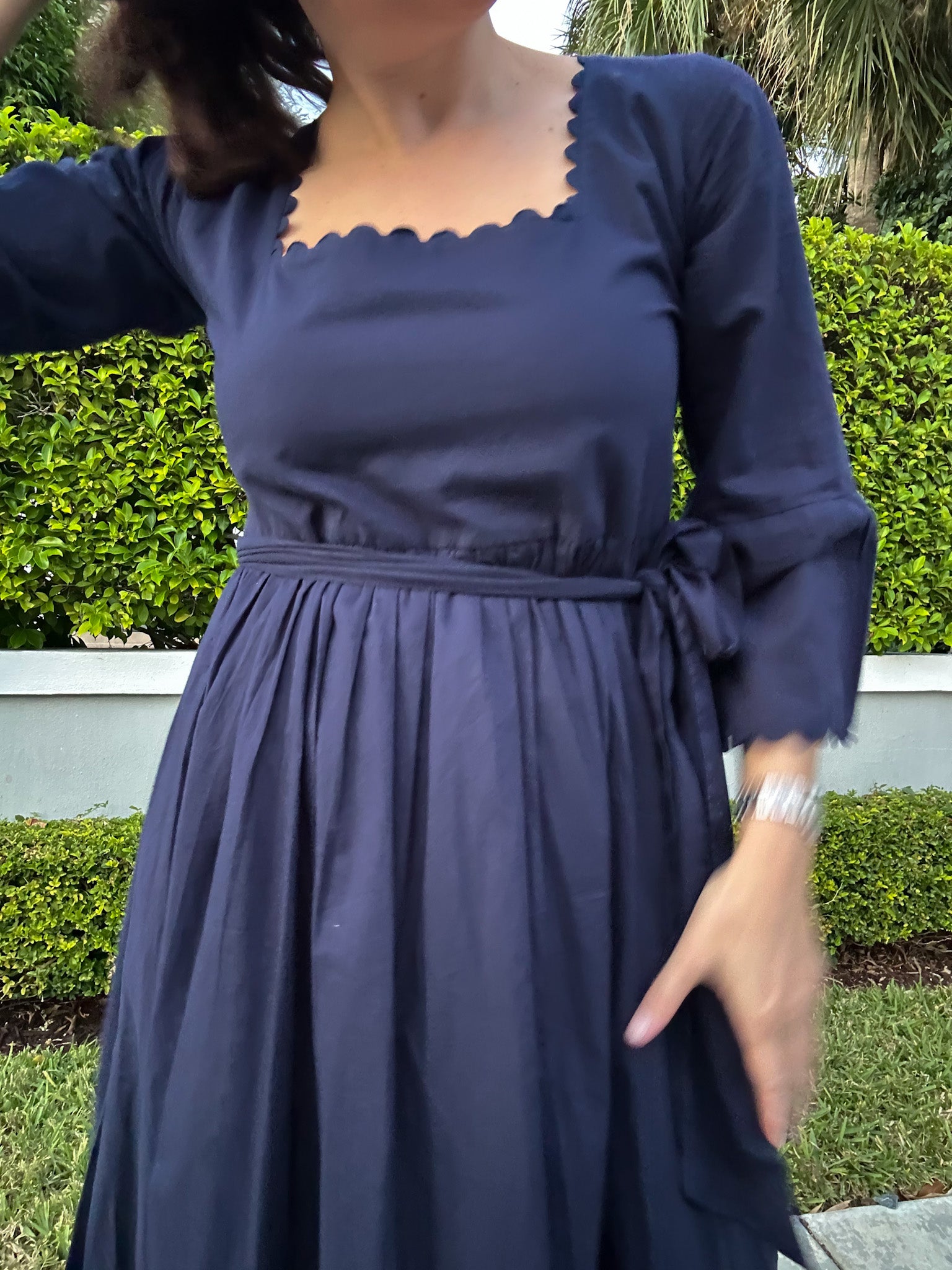 THE WAVENY DRESS NAVY SCALLOP